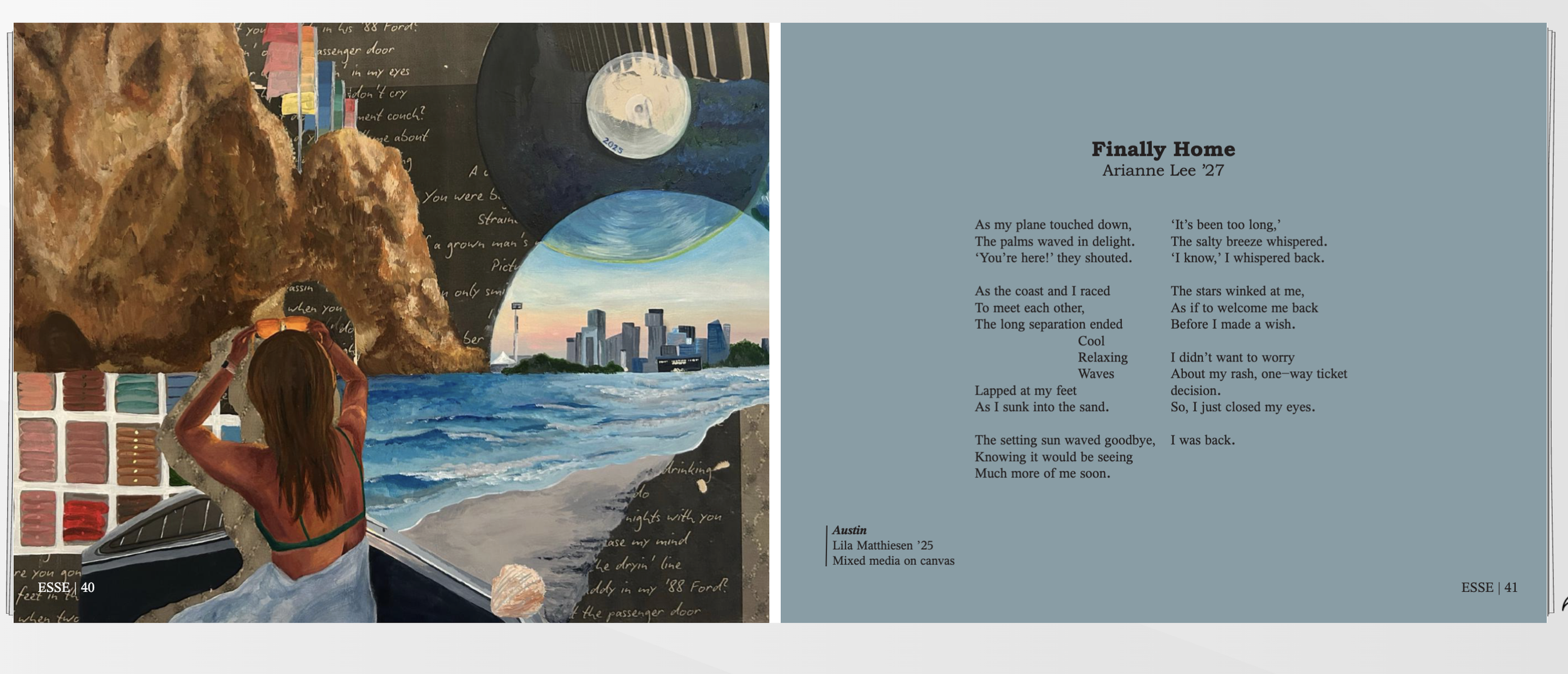 Both Austin and Spring into Summer were selected to be featured in the newest edition of Esse. This issue of the award-winning literary-art magazine features a diverse set of work from Ursuline students, including poetry, short stories, plays, photography, and paintings.